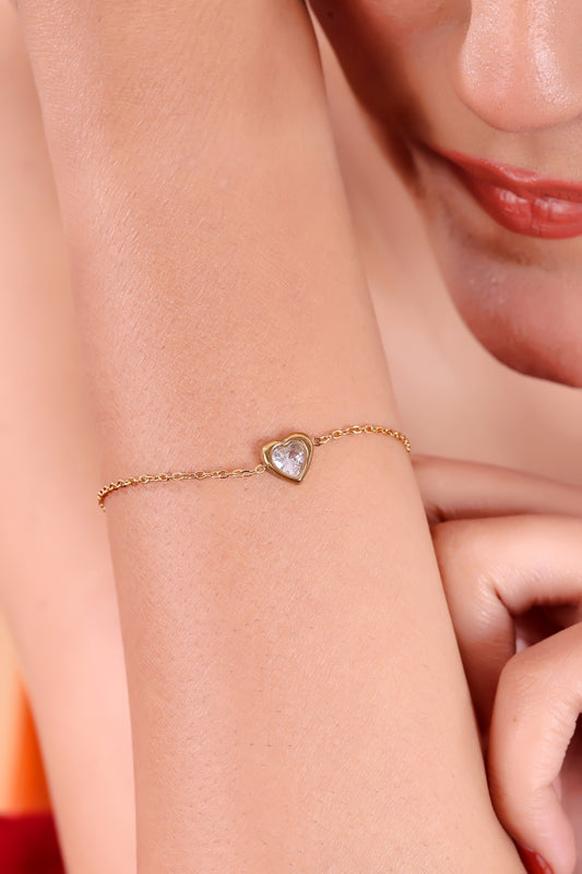 Elegant Gold Heart Bracelet with Sparkling Crystal Accent – A Symbol of Love & Grace