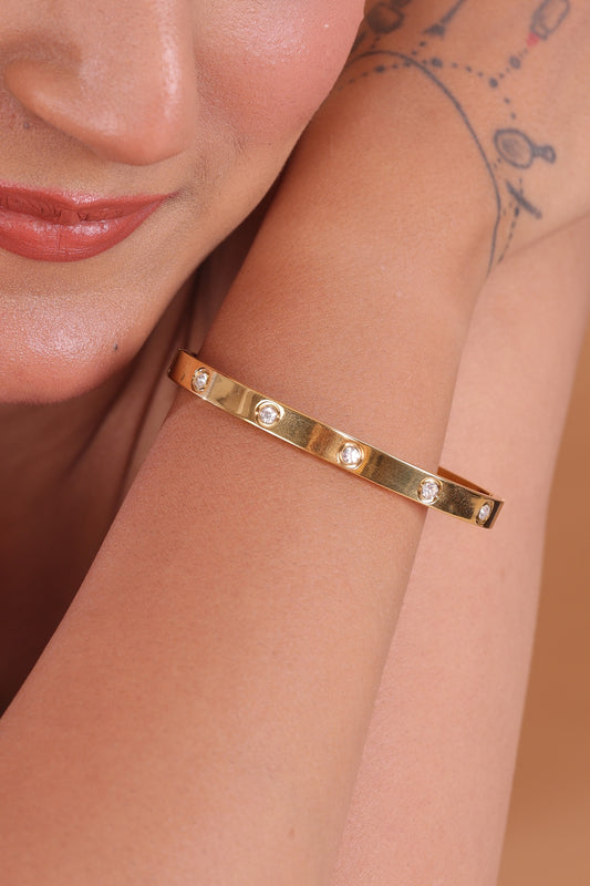 Sophisticated Gold-Plated Bangle with Sparkling Stones – A Timeless Symbol of Elegance & Luxury