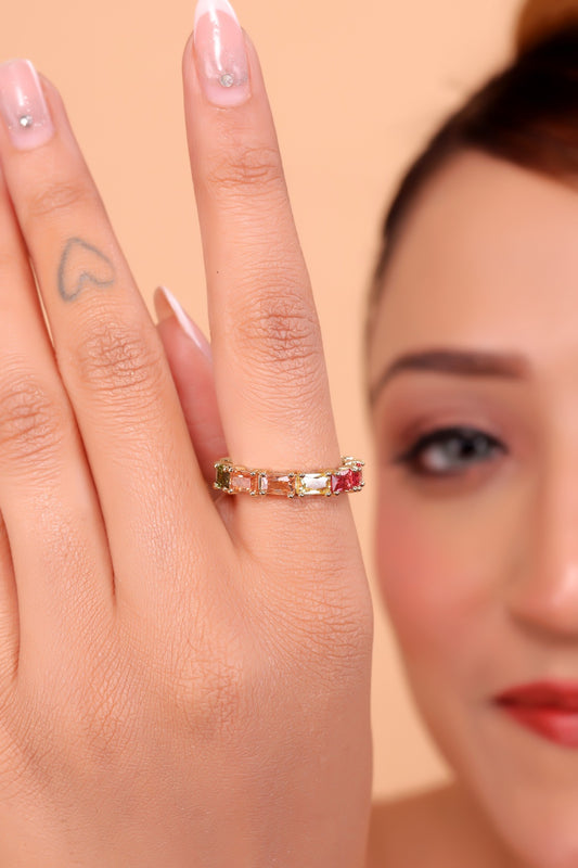 Rainbow Baguette Cubic Zirconia Ring Multicolor Square Crystal Eternity Finger Ring for WomenRegular price $9.00 USDRegular priceUnit price / per