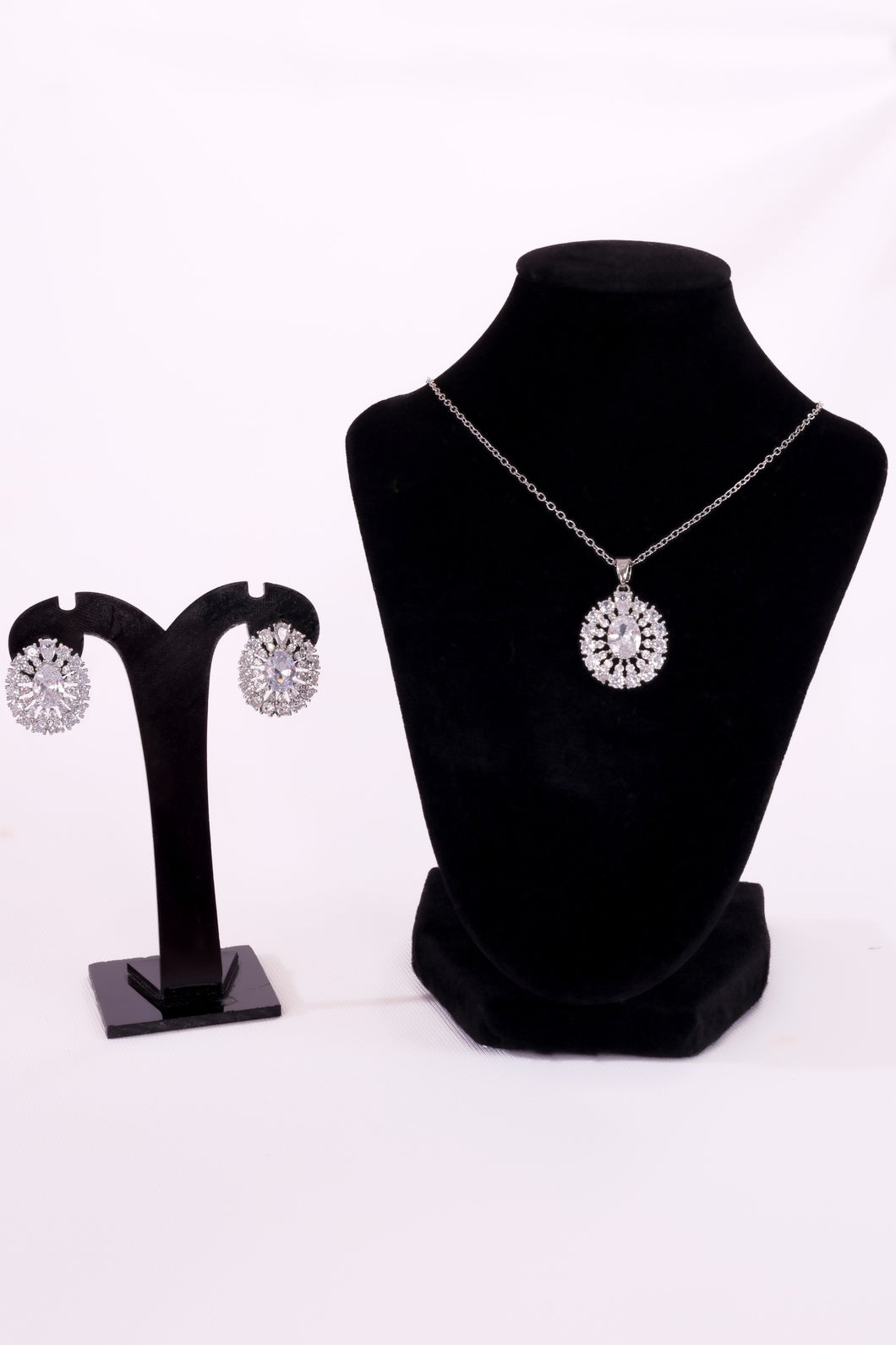 Necklace: Features a sparkling oval-cut pendant, suspended on a delicate yet durable chain, exuding sophistication and charm.