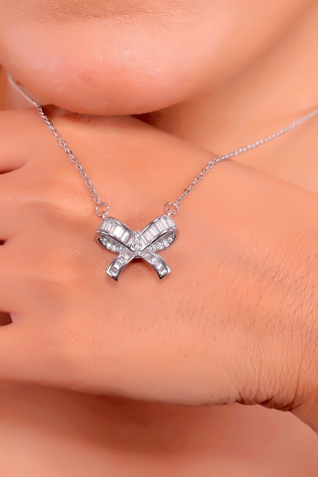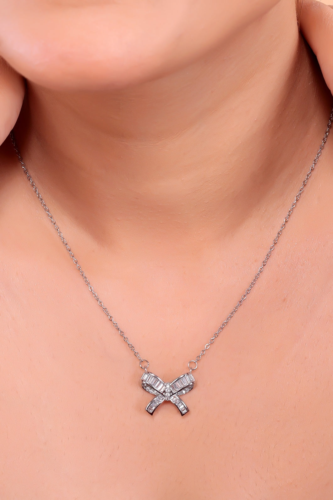Embrace the perfect blend ofΒ grace and sparkle with the Whimsical Elegance Bow Necklace, a stunning piece designed to add a touch of charm to your jewelry collection. ππ This exquisite necklace features a delicately crafted bow pendant, encrusted with dazzling crystals or cubic zirconia stones, radiating elegance and sophistication.