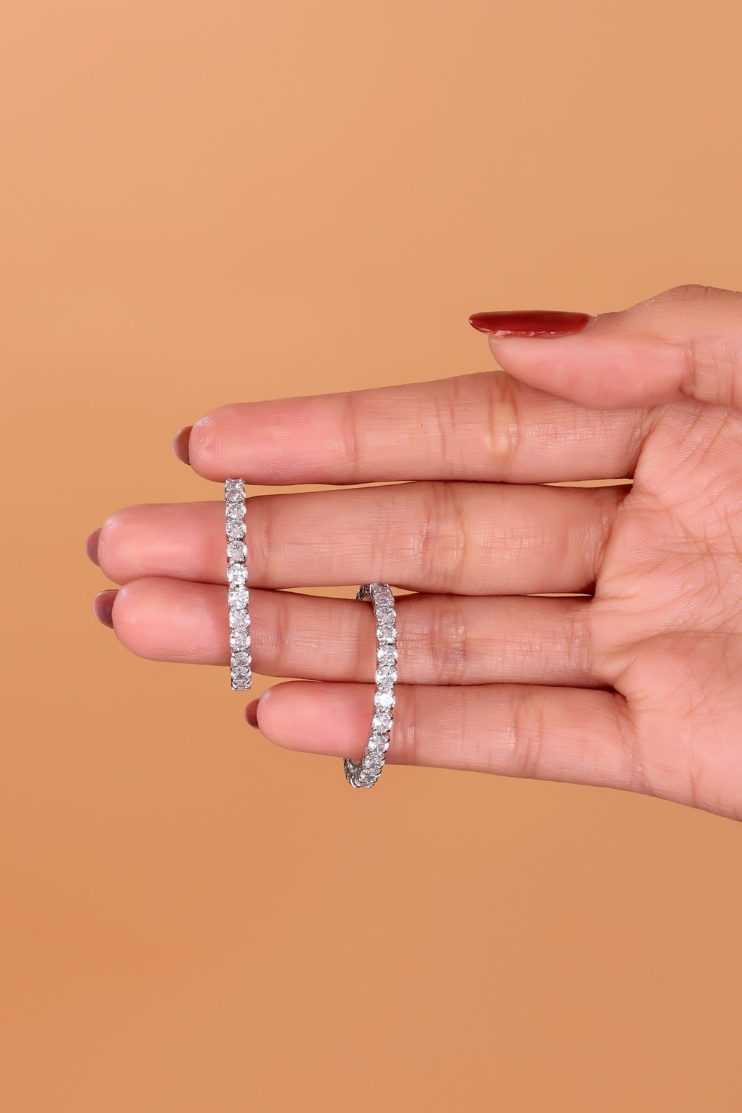 Each earring is adorned with brilliant-cut diamonds, carefully set along the hoop to ensure maximum light reflection and sparkle. β¨ These diamonds are meticulously selected for their exceptional clarity, fire, and brilliance, making them the perfect statement of refined elegance. The inside-out diamond setting (if applicable) allows for a continuous shimmer from every angle, ensuring you shine with every movement.