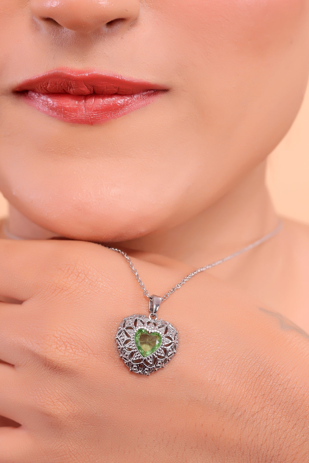 Celebrate love, elegance, and renewal with this stunning Intricate Heart Pendant, featuring a captivating Peridot gemstone at its center 💚. Crafted with exquisite detailing, the heart-shaped design symbolizes affection, strength, and timeless beauty, making it a meaningful piece to cherish forever.
