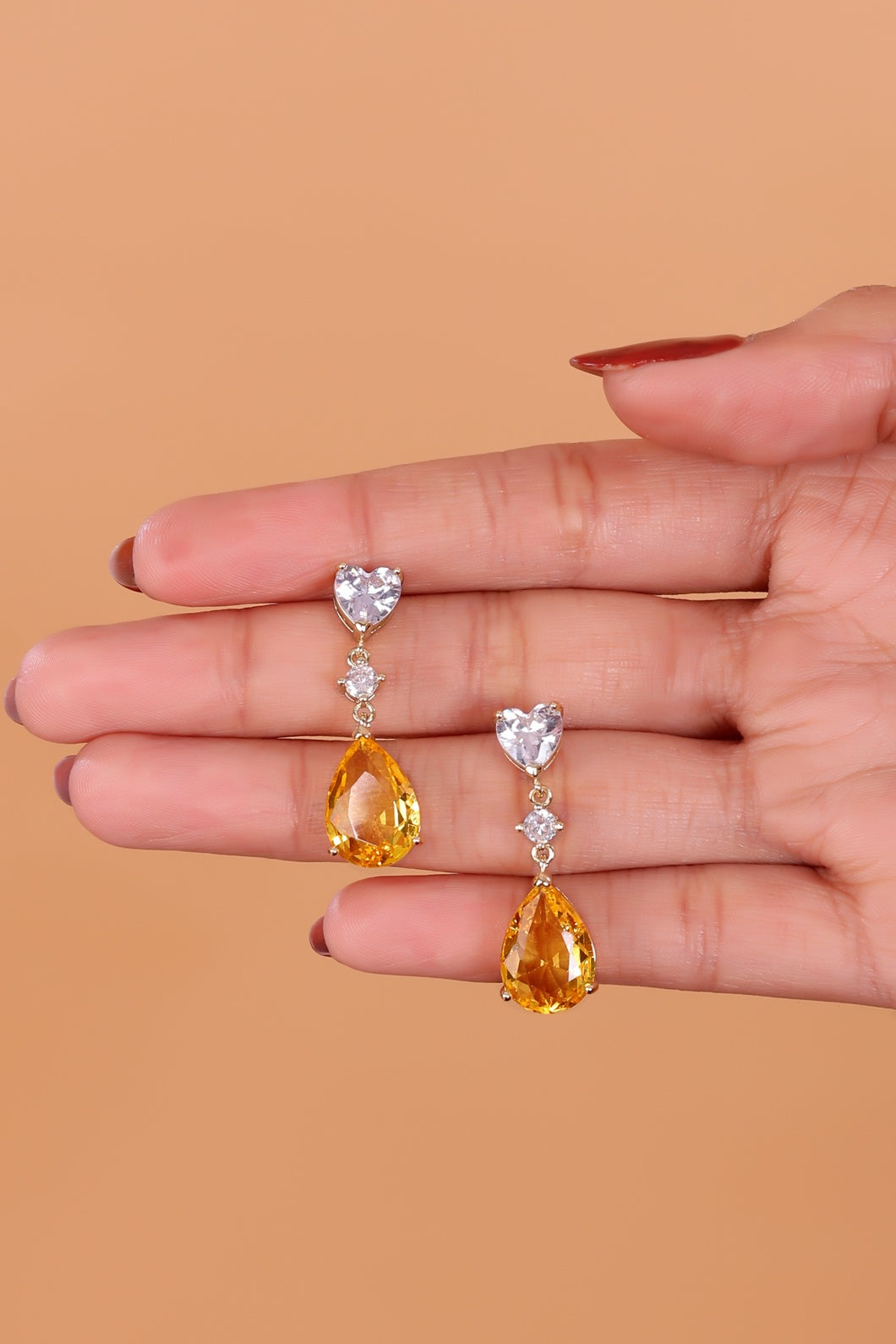 Add a touch of luxury and brilliance to your jewelry collection with these RadiantΒ & Yellow Teardrop Crystal Earrings! β¨ Designed to capture light beautifully, these earrings feature a heart-shaped cubic zirconia π at the top, a delicate round-cut stone π in the center, and a stunning yellow teardrop crystal π at the bottom, creating an exquisite cascading effect.